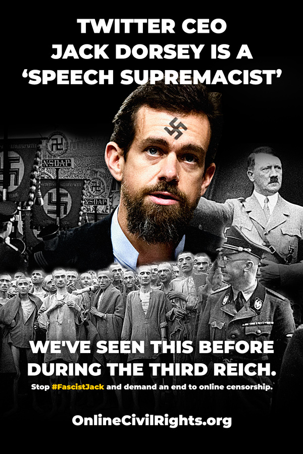 Jack Dorsey is a “speech supremacist” and an “idea bigot” whose reckless actions represent a real danger to any free society.